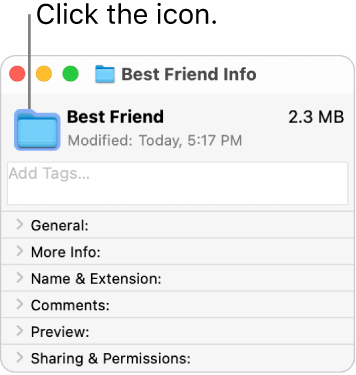 Select the file or folder you want to change, and right-click to choose the Menu Get Info.