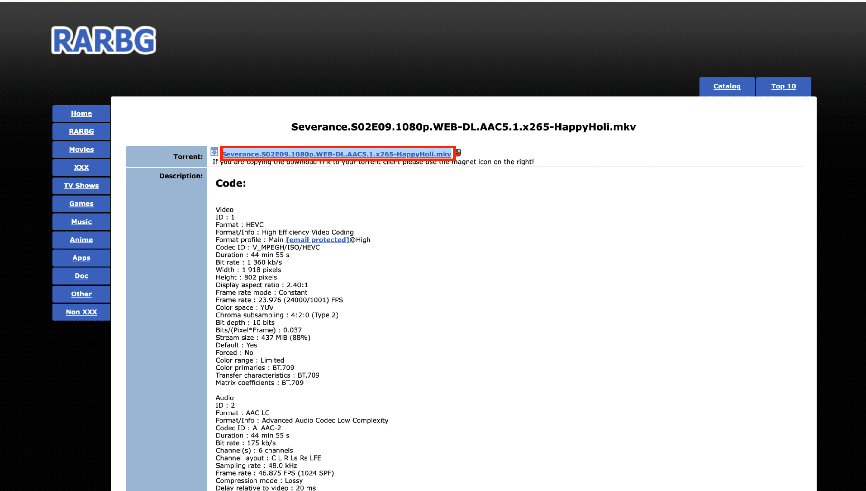 - Visit RARBG or any other BT resource site, find the desired file, and right-click to copy the magnet link.
